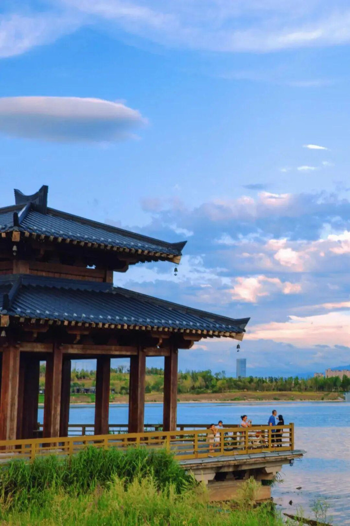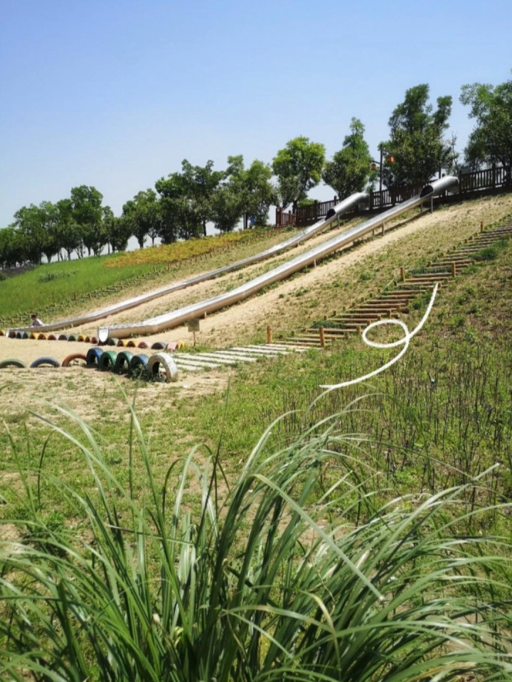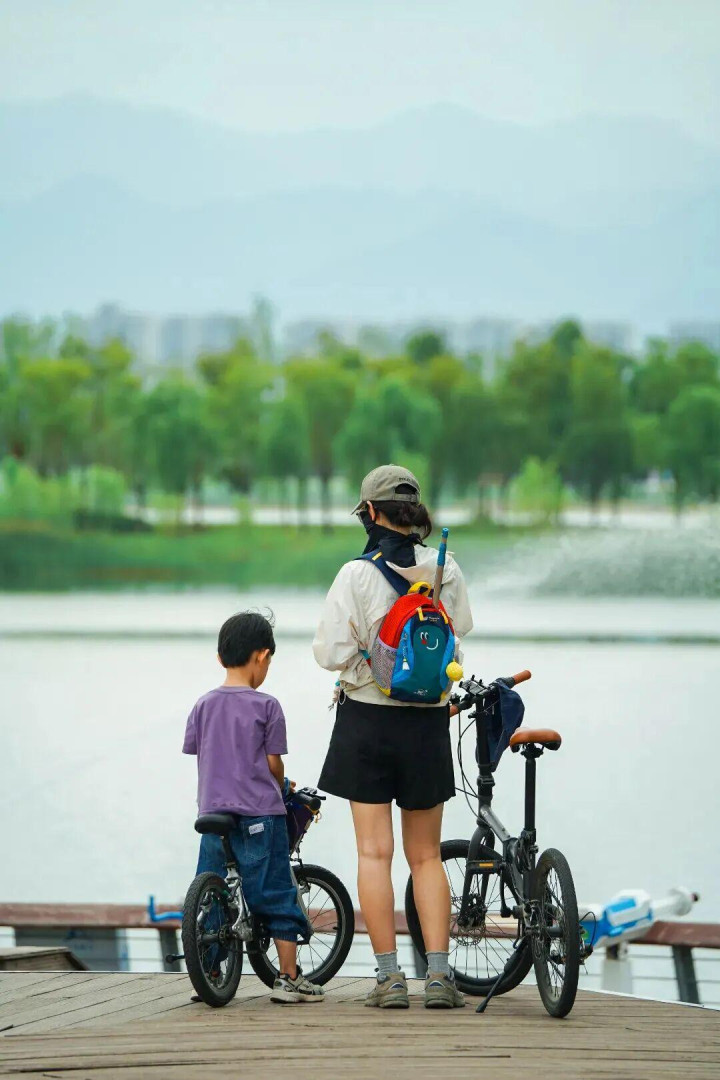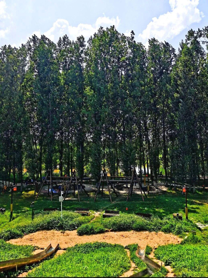 公园沿沣河而建,满眼都是密密匝匝的杨树林,秋日枝叶舒展着绿意,阳光透过缝隙洒下斑驳光影,静谧又惬意。无论是散步吸氧、静坐放空,还是和家人简单野餐,都能在这里轻松找到。蜿蜒的步行小路上,一步一景,园内还有儿童乐园,带娃也能轻松玩半天。