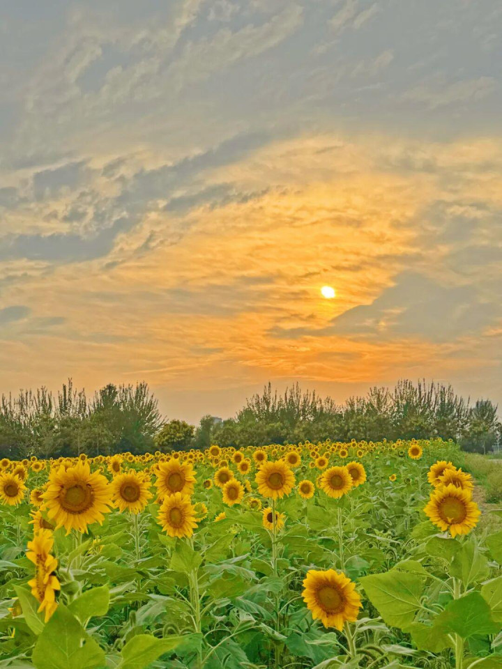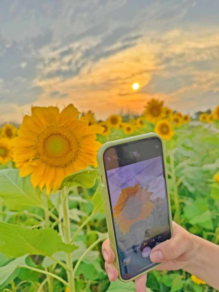 傍晚17:00-19:00:夕阳为向日葵镀上金边,逆光下的花瓣像浸了油画颜料,拍“落日与花同框”的场景,浪漫感直接拉满。
