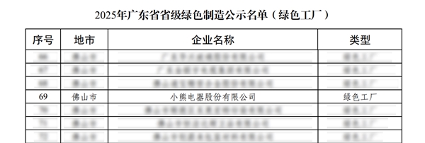 在国家深入推进“制造强国”战略与“双碳”目标的时代背景下,构建绿色制造体系不仅是政策导向,更是制造业迈向高质量发展的必由之路——近日,小熊电器(002959)凭借在绿色制造体系方面的系统建设与卓越实践,成功获评“广东省省级绿色工厂”。